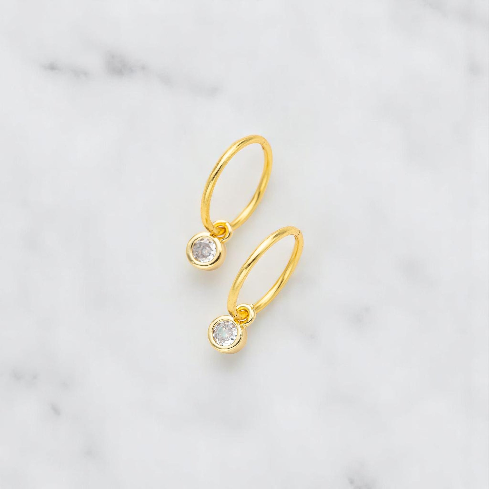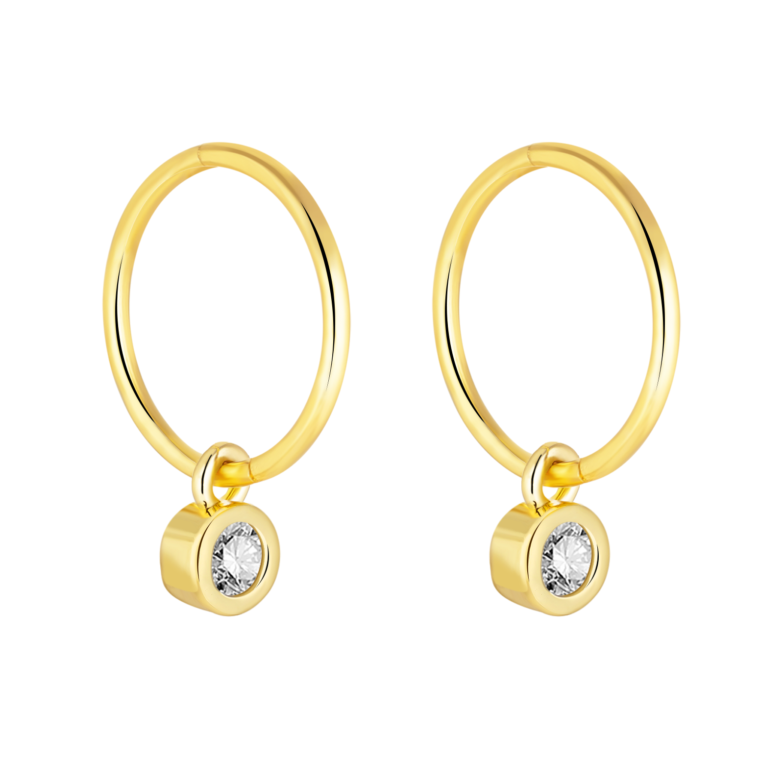 Gold Round Zirconia Charm Earrings
