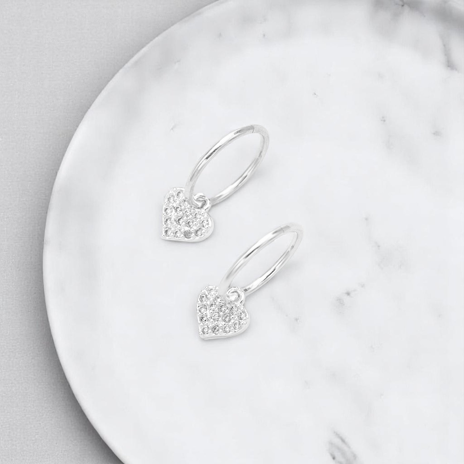 Silver Heart Charm Earrings